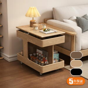 ソファに座ったまま作業ができるテーブル。レバーで簡単に折りたためてコンパクトに。