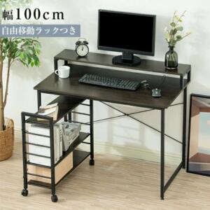 オフィスデスク パソコンデスク 幅100cm パソコンデスク 引き出し付き 収納台 パソコンデスク 木製 収納付 座デスク ミシン台 シェルフ付きデスク デスク付きシェルフ ワークデスク 書斎机 書斎デスク 学習机 勉強机 コーナー デスク 省スペース 5色