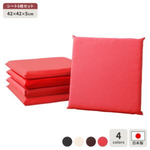 ■サイズ・色違い・関連商品関連商品の検索結果一覧はこちら■商品内容モダンデザインクッション・4colors・単品orセット・日本製■様々な空間をモダンに演出・和室にも・洋室にも■色々なシーンで幅広く使える・フロアクッションとして・お昼寝クッションとして・ソファクッションとして■水や汚れに強いPVCレザーを使用・丈夫で摩擦にも強い!・ペットがいるご家庭にもおすすめです■底づき感を感じにくいクッション・厚さ5cmのチップウレタン仕様・薄めでもしっかりとした座り心地です■ごろ寝におススメの長座布団もご用意・ごろ寝にも・フロアクッションとして■カラーバリエーションブラック、アイボリー、ブラウン、レッド■商品スペック【製品サイズ】 レギュラーシート:(約)幅42x長さ42x高さ5cm ロングシート:(約)幅42x長さ120x高さ5cm ※測り方や個体差によりサイズが多少異なる場合がございます。予めご了承ください。【外装生地】 合成皮革(PVC)※洗濯不可【カラー】 ブラック、アイボリー、ブラウン、レッド【クッション部】 側布/ポリエステル100% 中材/ウレタンフォーム(チップ) ※洗濯不可【生産国】 日本【梱包サイズ】 レギュラーシート 単品:(約)43x43x6cm レギュラーシート 2枚セット:(約)43x43x11cm レギュラーシート 5枚セット:(約)43x43x16cm レギュラーシート 10枚セット:(約)43x43x31cm ロングシート 単品:(約)43x61x26cm ロングシート 2枚セット:(約)43x61x56cm【商品に関するご注意】 ・サイズ・重量は概算です。 ・開封直後にまれに臭いが気になることがありますが、 その際には風通しの良いところで陰干ししてください。 ・カバーは洗濯できません。汚れた場合は濡れたタオル等で軽くたたきながら 汚れを落としてください。 ・こたつに使用する際は過度な高温は避け、長時間のご使用はお控え下さい。 ・写真の色調はモニターの機種や設定により実際の商品と異なる場合があります。 ・製品のデザイン・仕様・梱包は予告なく変更することがございます。 あらかじめ【配送上のご注意】 ・北海道、沖縄、離島への配送は致しかねます。 ・本商品は、配送希望日、時間帯をご指定可能です。 ‐配送希望日は出荷目安(最長)の 2 〜 30 日後の間でご指定ください。 ‐最短でのお届けをご希望の場合は「指定なし」を選択してください。 ※発送先エリア等で御希望に添えかねる場合があります。 ※在庫状況により、出荷が遅れる場合がございます。 ・本商品は、佐川急便での配送となります。 ‐ご購入前に商品が階段や廊下を通ることが可能かをご確認ください。 ・本商品は、「開梱設置」「組立設置」などの余計な費用が含まれていない 玄関渡し価格にてご提供しております。お部屋まで運ぶことはできかねますこと、 ご了承ください。■送料・配送についての注意事項●本商品の出荷目安は【1 – 6営業日 ※土日・祝除く】となります。●お取り寄せ商品のため、稀にご注文入れ違い等により欠品・遅延となる場合がございます。●本商品は仕入元より配送となるため、沖縄・離島への配送はできません。