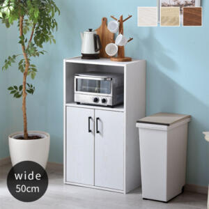 横長引き出しで小物を整理、下段には3分別ゴミ箱も収納。