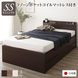 ■サイズ・色違い・関連商品 セミシングル(全3色) フレームのみ 国産ポケットコイルマットレス付き シングル(全3色) フレームのみ 国産ポケットコイルマットレス付き セミダブル(全3色) フレームのみ 国産ポケットコイルマットレス付き セミシングル(全3色) フレームのみ 国産ポケットコイルマットレス付き シングル(全3色) フレームのみ 国産ポケットコイルマットレス付き セミダブル(全3色) フレームのみ 国産ポケットコイルマットレス付き ■商品内容本商品は「組立設置サービス利用する」配送でございます。【配送希望日時指定について】 ・この商品は、配送希望日のご指定が可能です。時間帯のご指定はお受けできかねます。 ・注文時、最終確認画面にて配送希望日をご指定ください。 ・商品の入荷状況、配送地域、配送業者の状況等によって、 配送日時のご希望に沿えない可能性がございます。 ・ご注文が土日祝日の前日の場合、最短での配送希望日を承ることが できない可能性がございます。 ・最短での配送をご希望の場合は、指定なしでご注文ください。【ご注意事項】 ・商品注文後のキャンセルや返品は承りかねます。 ・本商品は離島への配送ができません。 ・一部地域への配送時には追加送料がかかる場合がございます。 ・大型商品は出荷から到着までに 2 – 5 日程度かかる場合がございます。 ・配送員が商品の開梱・組立・ 設置作業を行います。商品説明【デザイン】部屋が広くなるフラットヘッドボード ・省スペースで圧迫感のないシンプルなデザイン スペースにゆとりが生まれます ・空間が広がる理由は「約3cm」 一般的なベッドよりも20cm近くコンパクトに、 さらに収納力も抜群だからチェストも不要に。 【収納】長尺物も入るBOX収納構造 ・大容量のBOX収納構造 頑丈で、ホコリの侵入も防ぎ、長物も収納できる ・BOX構造とは 引き出し部の上下左右が囲われた箱のような構造なので、 丈夫でホコリの侵入を防ぎます。 ・画期的な収納構造 一般的なベッドは荷重を支えるサイドフレームが必要ですが、 BOX構造は不要、その部分を収納スペースとして有効活用できます。 さらに、引き出しのない空間は長物などを収納できる大容量スペースになります。 ・収納部は組み立て済み 引き出し収納部はすべて組み立て済でお届け。組み立て簡単です。 【品質】安心の日本製 使いやすく丈夫 ・ながく使える日本製品質 家具作りのプロによって設計された安心の数々 ・細部までこだわった、使いやすさの追求 -引出しはスライドレールを採用。たくさん収納しても開閉スムーズ -長物収納部分の床板は取っ手付き。大きな床板も楽々開けられます。 -引き出しの底板にも化粧板を使用。木クズが出にくく見た目にも美しい。 -引き出しの底には補強入り。収納物をしっかり支え底が抜けません。 ・ぴったり並べて使える 2台並べても隙間ができないので、1台の大きなベッドとしてご利用も。 ・耐荷重180kgの頑丈設計 お布団でも安心してご利用いただけます。 ・職人と機械がつくりあげる「日本品質」 創業50年、関東の老舗国産家具メーカー。創業以来、収納家具の生産技術を 徹底的に磨き続け完成させたのが職人と機械を組み合わせた 半自動一貫生産ライン。そこで作られる日本の住環境に寄り添うベッドは 設計・製造・組立のサイズまで妥協せず、丁寧に作り上げた「日本品質」 ぜひ、その使いやすさをご実感ください。 ・低ホルムアルデヒドF☆☆☆☆ ホルムアルデヒドはシックハウス症候群になる原因の一つで家具や 芯材や塗装にも含まれています。ご家族皆様が安心して ご利用いただける本商品は低ホルムアルデヒドF☆☆☆☆を使用しております。【国産ポケットコイルマットレスもご用意】 ・体型や姿勢の凹凸に合わせてフィット コイルが1つずつ不織布の袋に包まれ独立しており、 荷重のかかる部分だけ沈み込みます。 身体のラインにそって支えるため体圧分散にすぐれています。【組立設置サービス】 ・組立が不安な方は本サービスをご利用ください。 配送スタッフ2名が搬入、開梱、組立、設置、梱包材廃棄を行います。■商品スペック■ベッドフレーム本体【サイズ】 セミシングル:(約)幅83×長さ199.5×高さ80cm シングル :(約)幅98×長さ199.5×高さ80cm セミダブル :(約)幅120×長さ199.5×高さ80cm 床面までの高さ:(約)30cm【収納部有効内寸】 引き出し :(約)幅87×奥行38×深さ15cm 長物収納 セミシングル:(約)幅29×奥行193×深さ23cm シングル :(約)幅44×奥行193×深さ23cm セミダブル :(約)幅66×奥行193×深さ23cm【材質】 プリント紙化粧繊維板、引き出し:桐集成材【カラー】 ダークブラウン、アイボリー、ナチュラル【生産国】 日本【梱包サイズ】個口数:4 セミシングル:(約)7×86×83cm・6×86×33cm・98×36×10cm・33×196×56cm シングル :(約)7×101×83cm・6×101×33cm・98×51×10cm・33×196×56cm セミダブル :(約)7×123×83cm・6×123×33cm・98×73×10cm・33×196×56cm■国産ポケットコイルマットレス【サイズ】 セミシングル:(約)幅84×長さ195