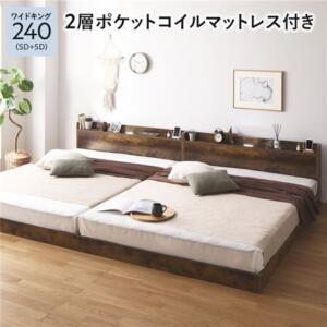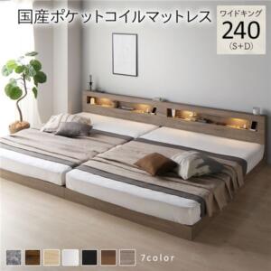 【送料無料】ベッド ワイドキング 240 SD+SD 3ゾーンポケットコイルマットレス付 グレージュ 連結 高さ調整可 宮付 すのこ