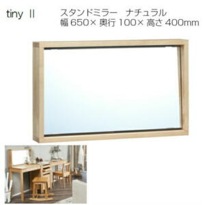 【タイニー2 スタンドミラー】 ●サイズ:幅650×奥行100×高さ400mm ●素材:アルダー無垢材(オイル仕上げ) 鏡 ●ミラー角度調整可能 ●完成品 ●生産国:ベトナム ●北海道、沖縄、離島への配送は荷物中継料が別途かかります。 木目の美しいアルダー無垢材をオイルフィニッシュで仕上げたナチュラルな木の風合い。小さくても上質であることにこだわったコンセプトで、自分だけの心地よい空間を演出してくれる家具シリーズ。無垢材で形作られたシンプルなボックス型の置きミラーは、鏡が大きめで角度調節も可能。同シリーズのデスクにセットでき、もちろん単体でもご使用いただけます。