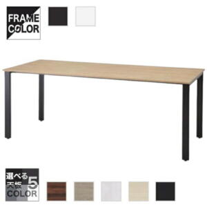MT-JTTR187SAWMT1のサイズは、幅1800mm、奥行750mm、高さ720mmです。 天板は1枚で、配線機能はありません。 天板素材はメラミン化粧板、エッジはスクエアエッジです。 脚部はT字脚で、角脚、キャスターは付いていません。 収納、幕板、棚もありません。脚素材はスチールです。