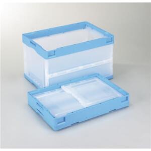 TANOSEE 折りたたみコンテナ フタなし 長辺扉付 50L ダークブルー/透明 1セット(10台)