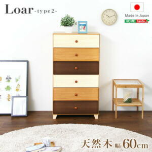 美しい木目の天然木ハイチェスト 6段 幅60cm Loarシリーズ 日本製・完成品|Loar-ロア- type2