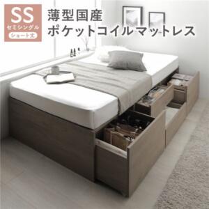 宮付き チェスト ベッド ショート丈セミシングル ブラウン ボンネルコイルマットレス付き 2口コンセント付き 大容量 引き出し4杯 引き出し収納付 収納スペース付 すのこベッド 収納ベッド ベッドフレーム 寝具 インテリア家具 寝室家具 ベッドルーム 寝室 組立品