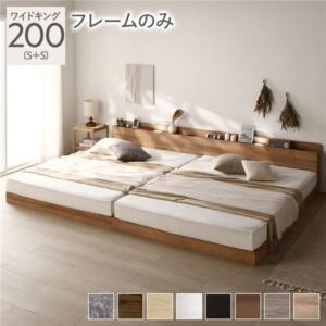 スタイリッシュ ローベッド すのこベッド ダブルサイズ ベッドフレームのみ 宮棚付き 二口コンセント付き 木目調 通気性抜群 メラミン樹脂加工板 頑丈 ブラック