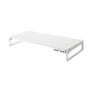 LIHITLAB 机上台 590mm USB3.0ハブ付 白 A-7334-0