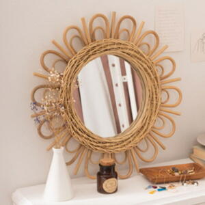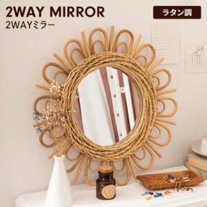 ラタンミラーどんなインテリアにも馴染みやすいラタンのミラーは、奥行きが生まれ空間のイメージをガラッと変えてくれます。サイズ:約W47×D47×H3(cm)素材:ラタン ラッカー塗装 ミラー ※ミラー部サイズ:Φ23.5cm組立状態:完成品原産地:インドネシア※天然ラタン製品の為、色や風合いに一点一点差がございます。また、とげ状のささくれ(網目の繋ぎ目なども含)ができることがあります。身体や衣服などを傷つけないようにご注意ください。尚、ささくれは使い込んでいく過程でも発生することもございます。はさみ等で取り除くか、ボンドなどで固定いただいてご使用ください。天然石(ピンクタイガーアイ)1個おまけつき(商品とは関係ありません)別送のし・ギフト包装は、注文確認ページのプルダウンまたは備考欄にてご指定ください。備考欄のみでも承ります。