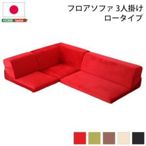 ローソファー 【コーナー付き 3人掛け 同色2セット レッド】 座面高7.5cm 分割式 起毛素材 日本製