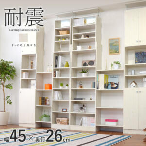 商品仕様 ■棚板タイプ: 厚棚板(厚さ2.5cm)タイプ ■棚板耐荷重: 15kg ■外寸: 奥行31cm×高さ232〜241cm×幅45〜59cm (幅は1cm単位でオーダーできます) ■対応天井高: 232〜241cm (ラック高さ178cm+突っ張り棚高さ47cm+伸縮突っ張り金具) ■棚板枚数 移動固定棚板:7 ■扉枚数:本体棚 上部扉2枚・下部扉2枚、突っ張り棚 2枚 両開き ■本体棚扉サイズ:上扉62.6cm+下扉80.8cm ■付属品: 突っ張り金具・転倒防止補助バンド・扉取付用ヒンジ・取っ手用金具(標準つまみ)・ビス ■外寸(幅): 45cm 46cm 47cm 48cm 49cm 50cm 51cm 52cm 53cm 54cm 55cm 56cm 57cm 58cm 59cm 共通仕様 ■材質: プリント化粧繊維板 ■塗装: ウレタン樹脂塗装 ■素材: ホルムアルデヒドの発生を最小限に抑えた基材・芯材・プリント紙・接着剤(F☆☆☆☆フォースター)を使用 ■生産国: 日本製 ■お届け: お客様組立て ここがポイント!オプションを上手に使って更に便利!価格 サイズ一覧 色 仕様 多サイズ 耐荷重 棚受 扉 取手 転倒防止 突張棚 天板 突張強化 追加加工 注文 飾り棚付両開き扉本棚 奥行31cm×高さ232〜241cm×幅45〜59cm 選べる!幅1cm単位指定 飾り棚付両開扉 棚板厚2.5cm 高さ232〜241cm 低ホルムアルデヒド お客様組立 本体棚扉サイズ:上扉62.6cm+下扉80.8cm 幅45〜59cm 奥行31cm 耐震突っ張りラック 飾り棚付両開き扉 高さ・奥行き・幅、色々選べます(幅1cm単位オーダー) ◆本体棚扉サイズ:上扉62.6cm+下扉80.8cm 耐震突っ張りラック商品一覧 ■その他の扉組み合わせへはこちらから 上扉41.5cm+下扉41.5cm 上扉41.5cm+下扉52.5cm 上扉41.5cm+下扉62.6cm 上扉41.5cm+下扉72.5cm 上扉41.5cm+下扉80.8cm 上扉41.5cm+下扉109.5cm 上扉52.5cm+下扉41.5cm 上扉52.5cm+下扉52.5cm 上扉52.5cm+下扉62.6cm 上扉52.5cm+下扉72.5cm 上扉52.5cm+下扉80.8cm 上扉52.5cm+下扉109.5cm 上扉62.6cm+下扉41.5cm 上扉62.6cm+下扉52.5cm 上扉62.6cm+下扉62.6cm 上扉62.6cm+下扉72.5cm 上扉62.6cm+下扉80.8cm 上扉72.5cm+下扉41.5cm 上扉72.5cm+下扉52.5cm 上扉72.5cm+下扉62.6cm 上扉72.5cm+下扉72.5cm 幅を設置場所に合わせて1cm単位でオーダーできます! 国産耐震突っ張りラックはここが人気 輸入品との違いに注目!【売り上げ好調 耐震突っ張りラック ご満足いただいてます】 【ピッタリサイズ】幅1cm単位でオーダーできる耐震突っ張りラック。スペースや用途に合わせて自由に指定できます。 【日本製・高品質】優良材を使用し丁寧加工、板厚さ・見えない内部構造・芯材も充実の耐震突っ張りラック。強度もUP 【天井ピッタリ】 天井突っ張り棚ご用意(高さ6種類)+天井突っ張りアーム調整で、天井高208cm〜259cmに対応。 【サイズ豊富】 奥行(4種)/高さ(6種)/幅(5〜7種)/扉タイプ(3種)→耐震突っ張りラック サイズバリエーション豊富 【堅牢・耐荷重】 厚棚板(厚さ2.5cm)専用ジョイナーで横強度アップ。 【オリジナル棚受】独自フリーストップ棚受により強度・耐久性抜群、通常の金属タボとは断然違います。棚高さ調整自在。 【天板かぶせ構造】美しく少し前まで出し、上面フラットな天板で、ハイグレードと便利さを実現耐震突っ張りラック 【カラー10色】 ライトナチュラル・ダークブラウン・・どんな場所にも合うカラーをご用意しました。 【転倒防止対策】 壁固定バンド・ジョイントステー等の付属品。天井突張棚・壁面固定具取付穴・横連結穴オプション等充実 【フルオープン構造】棚板を自由に設置できるから、無駄のない収納が実現します。 【オプション豊富】幅木よけ加工、棚移動1.5cmピッチ、(配線用)裏板穴加工、タフ棚板穴加工などの加工オプション。 【取手オプション】アーチ・フラット・スティックハンドルへ変更できます。使い勝手やデザイン性に合わせて変更 耐震突っ張りラックなら高級・安全品質の日本製耐震突っ張りラックが断然人気。突っ張りタイプで万全の安全対策! 耐震突っ張りラック 奥行31cm×高さ232〜241cm×幅45〜59cm 幅1cm単位指定!ぴったり設置 飾り棚付両開扉 棚板厚2.5cm 高さ232〜241cm 低ホルムアルデヒド お客様組立 本体棚扉サイズ:上扉62.6cm+下扉80.8cm 幅45〜59cm 奥行31cm