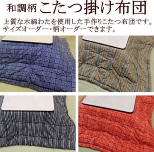 寒い季節の必須アイテムのこたつ用品。〜毎年使うからこそ良い物が欲しい!〜〜和テイストなこたつだけどオシャレに使いたい!〜眠り姫では豊富なサイズと種類を用意しております。一つの柄で掛布団・敷布団・カバー・クッションまで揃うので、統一感のあるお部屋が完成します。軽いポリエステル仕様〜しっかりとした米綿仕様の多様な「掛布団」床冷えを防ぎ、座り心地の良い「敷布団」色柄豊富でどこにでも使える「マルチカバー」単品で選んでも、セットで選んでも◎寒い季節・・心も体もホッと過ごしてください。 ■商品説明 お気に入りのこたつ布団でも、カバーをつけていれば、汚れる事もあまり気にする事がありません。 お手持ちのこたつ布団も気分によってお手軽にお部屋のイメージ変更ができちゃいます。 綿100%のカバーなので、丈夫で毛玉ができにくく長くご使用いただけます。 洗濯機で丸洗いできるのでいつも清潔。 ファスナー付で取り外しも簡単!どの位置に座っても心地よく座っていただけるようにファスナーは横ではなく裏面についています。 ■スペック ■サイズ 195cm×245cm 【こたつ掛布団サイズ:185×235cm】 ■生地 表面:綿100%(オックス生地)裏面:綿100%(ベージュ)(収縮率)縦-3.5%:横-1.1% ■原産国 日本製 ■ご確認ください ※この商品には、こたつ布団はついていません。こたつカバーのみです。 ※綿100%生地を使用していますので、洗濯後の縮みを考慮して大きめに縫製しています。 ※モニターによって色の見え方が違います。 実際の色の確認をご希望の方は、カット生地(小)を送らせていただきます。 ご連絡ください。※モニターと色が異なる理由での返品は承る事ができません。 ※生地表面に黒い小さな点ある場合がございます。 使用しております素材本来の物であり汚れ等ではございません。 また、生地の表面上に凹凸がある事もございますが、糸の太さに微細な違いがある為に生じる凹凸となります。 綿100%本来の特徴となります為、ご了承くださいませ。 ※生地は生地幅の仕様上、一枚物ではなくつなぎ合わせがございます。ご了承くださいませ。 《 デニムスター 》シリーズの他の商品は こちら 》》 から