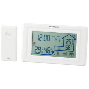 ※他の商品との同梱は不可となります。(商品ごとのご注文を宜しくお願い致します。)室内、室外の環境が一目でわかるワイヤレス式の温湿度計測機付の多機能時計。タッチパネル搭載で操作は液晶画面に触れるだけ。計測器を子供部屋、年配の方の部屋に置いておけば、一目で室内の状況がわかり、熱中症予防や、風邪対策にも。置き掛け兼用でご使用いただけます。電源はUSBと電池の2WAY仕様です。機能:時計、アラーム、スヌーズ、カレンダー、室内外温湿度計、室内外快適度表示、バックライト、タッチスクリーン箱サイズ(cm):24.5×3×10.5cm現品サイズ・内容:16.5×2.1×9.8cm本体1個・ABS樹脂・単4電池4本使用(別売)・温湿度計測器1個、USBコード1本付・[中国製]製造生産地:中国製