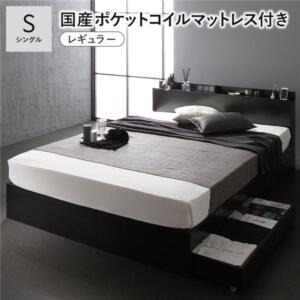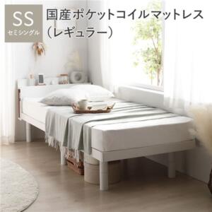 ベッド シングル 国産ポケットコイルマットレス付 ハード ホワイト 高さ調整可 コンセント 宮付 宮棚付 棚付 ヘッドボード すのこ ベッドフレーム ローベッド すのこベッド フロアベッド シングルベッド ベット 寝具 インテリア家具 寝室家具