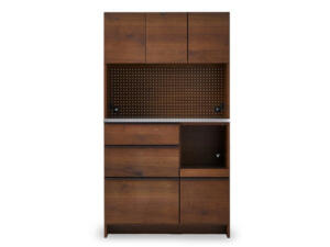 本棚としてだけでなく、多目的に使用していただけるキャビネット。圧倒的存在感で収納力も抜群。下段のキャビネットは上段のオープンラックより奥行があり、キャビネット部の天板は収納物の出し入れの際に一時的に物を置いておくのにも便利。使い勝手がよく機能的です。