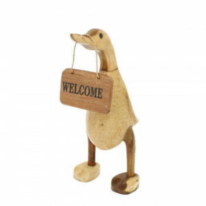 くちばしにウェルカムボードを引っ提げてお出迎えしてくれる木彫のアヒル。玄関先やお店のレジ横に置いて、気持ちが和む空間を演出してみませんか?サイズ約W10×13×H22cm個装サイズ:22×13×10cm重量個装重量:500g素材・材質木生産国インドネシアfk094igrjs