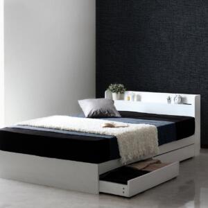シックな色合いで美しいフォルムが特徴的なヘッドボード付き引出し収納ベッド【ラテ】。棚付き、2口コンセント、引き出し収納が付いたシンプルで実用的な多機能ベッドです。サイズはS、SD、D、Q。カラーは8色。お好みのインテリアに合う色をお選びください。