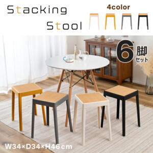 スツール 椅子 6脚 スタッキング 四角 北欧 ラタン調 プラスチック 樹脂 室内 屋外 高さ46 完成品 スタッキングチェア 背なし イス 積み重ね カフェ アウトドア
