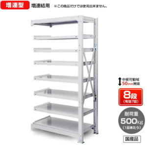 サイズ 高さ 横幅 奥行 表記寸法 1500 900 600 外寸法 1505 900 600 棚板寸法 850 570 ※設置場所は外寸法+50mm位の余裕をもって下さい。 ● 均等耐荷重 4900N【500kg/段】 ※棚板1枚あたり ● 色 ライトグレー、グリーン色 メラミン焼付塗装 ● 生産国 日本 ISO認定工場生産品 ● 棚板の厚さ 40mm ● 中板取付幅 50mm ● 自重 56kg ● 出荷の目安 1週間程度 ※在庫がある場合 ● 梱包内容 C型支柱 x 2本スチールベース x 2個スチール棚板 x 5枚ビーム x 4本棚受 x 10本ボルトセット x 1セット側面ブレース x 4本組立・取扱説明書 x 1枚 ● 商品説明 ボルトレス棚よりも堅牢で耐久性に優れています。棚板はボルトを使用しないボルトレス構造になっていますので取付や移動が簡単に出来ます。中量ボルト式棚は横連結が可能ですので、横に連結してご使用になる場合は、2台目からは増連型をご購入下さい。※増連型のみではご利用頂けませんのでご注意下さい。【個人のお客様もご購入頂けます。業務用スチールラック・スチール棚】上の画像2つは棚板5枚仕様です。
