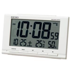 SEIKO セイコー 置き時計 目覚まし時計 電波時計 SQ799B商品説明柔らかな印象の明るい木目調のフレーム便利な温度湿度表示付き記念品にも最適●枠材 プラスチック枠(薄茶木目模様)、前面:ガラス●サイズ・重さ 91×148×47mm 200g●電池 単3マンガン乾電池2個(電池寿命約1年間)●機能 ・電波修正機能(40kHz/60kHz自動選局・受信OFF機能つき)・電子音アラーム・アラームオートストップ機能(約5分間)・スヌーズ・アラームモニター機能・2099年までのフルオートカレンダー機能・温湿度表示(温度測定範囲:0℃~40℃ 測定精度:±2℃ 湿度測定範囲:25%RH~85%RH 測定精度:±8%(25℃)・12時間制/24時間制切替式・デジタル文字高さ最大36mm●付属品保証書(1年)、取扱い説明書発送詳細○昼12時までのご注文、振込み確認で、即日発送致します。(日曜定休)※土曜午後から日曜にかけてのご注文分は月曜発送になります。○送料無料(本州、四国、九州)北海道、沖縄には発送できません。