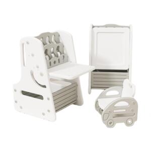 LZ LEISURE ZONE 子供 机 椅子 セット ホワイトボード + ブロック基礎板付き 幼児 机 折りたたみ 子供用テーブルと椅子2点セット リビング学習/絵かき/ダイニング/プレイセット を丸く加工し 1-10歳 テーブルセット 【EN71認証済み】 学習デスク ホワイト クリスマス 誕生日 プレゼント (学習机 6in1 デスク調整可能 折りたたみ式)