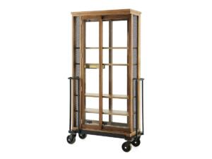 素材感を活かした本格ダイニングボード。節有りの突板を使うことで、高い質感を出した食器棚です。表面の木目は横方向につながるように仕上げ、無垢材のような存在感を表現しています。