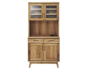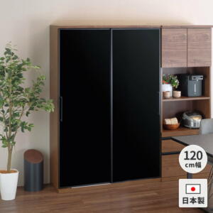 一番の特徴はスチールフレームパーツにより、バックボードがなく壁面が見えるデザイン。こだわった住居の壁面タイルや壁紙も隠すことなく設置できます。カウンター部の側面も抜けているため、大型家具特有の圧迫感がなく、キッチンが広く見える効果があります。カフェやショップのようなレイアウトでお気に入りの食器や器具などを飾りながら収納することができますので、使い勝手やこだわりを詰め込んだキッチン収納を実現していただけます。