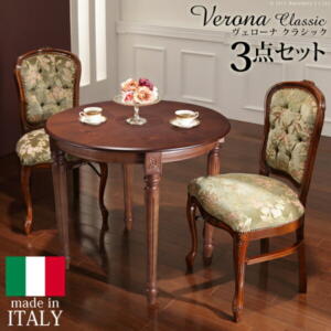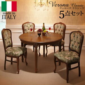 イタリア 家具 ヨーロピアン ヴェローナクラシック ダイニング5点セット:テーブル幅135cm+チェア-ヨーロピアンブルー4脚 猫脚 ヨーロッパ家具 クラシック 輸入家具 アンティーク風 イタリア製 ブラウン おしゃれ 高級感 エレガント 木製 天然木 リモート テレワーク 在宅