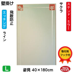 【クーポンあり】JHA 姿見 壁掛け 鏡 おしゃれ 八角姿見 八角姿見鏡(デザイン風水ミラー) シンプル4 八角形 W400×H1500(飛散防止・壁掛け用)(完全防湿) EO-40X150TF-S4 風水鏡 フレームレスミラー ノンフレーム 玄関 全身鏡 全身ミラー モダン シンプル エッチング
