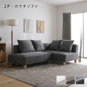 コーナーカウチソファ セット 2人掛 + カウチソファ ミックスグレー 洗える カバー スチール脚 カバーリング