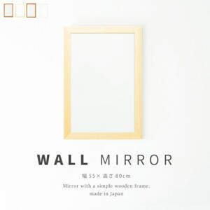 ■サイズ・色違い・関連商品■55×80cm ホワイト■55×80cm ナチュラル[当ページ]■55×80cm ハニーブラウン■38×130cm アンティークブラウン■38×130cm ホワイト■38×130cm ナチュラル■38×130cm ハニーブラウン■60×108cm アンティークブラウン■60×108cm ホワイト■60×108cm ナチュラル■54×130cm アンティークブラウン■54×130cm ホワイト関連商品の検索結果一覧はこちら■商品内容無垢材の良さを味わうことのできるウォールミラー幅広の木枠フレームが印象的でスタイリッシュな姿見タイプ。用途に合わせて縦横どちらでも設置可能です。そのまま壁に立てかけてもお使いいただけます。無垢材にこだわり木枠にはツガ材を使用。5cm幅の木枠とミラー面は、ほぼフラットで見た目に美しく、ミラーに枠の映り込みがないのが特徴です。すっきりとした緻密で繊細なデザインはインテリアとしても上品で趣のある風合いを感じさせてくれます。塗装には安全性の高いF☆☆☆☆のウレタン樹脂塗料を使用しています。ご注文を受けてからのセミオーダー体制で、職人がお一人おひとりのために丁寧にお作りします。用途や場所に合わせて選べる6サイズ、カラーは4色ご用意しています。[55×80cm・60×108cm・38×130cm・54×130cm・40×161cm・50×161cm][ホワイト・ナチュラル・アンティークブラウン・ハニーブラウン]枠の裏にある金具に付属のひもを通して設置してください。壁側のフックはご準備して頂く必要がございます。・ミラー厚3mm(飛散防止効果あり)・壁掛け用ひも付・届いてすぐに使える完成品・日本製=ご注意=天然木の性質上、木目の柄や節、色味などに個体差がございます。ご理解の上ご注文いただきますようお願いいたします。壁に立てかけてご使用の場合、転倒防止対策をお願いします。=出荷について= ※注意事項を確認の上ご注文ください※受注生産品の為ご注文後のキャンセルは不可です■商品スペック【商品名】 幅広枠ウォールミラー(55×80cm)(ナチュラル)【商品サイズ(約)】 幅550×奥行20×高さ800mm【商品重量(約)】 3.5kg 【材質】 天然木(ツガ材)・ミラー(3mm厚) 【塗装】 ウレタン塗装【生産国】 日本【備考】 天然木フレーム 飛散防止加工ミラー 壁掛け用ひも付 完成商品【注意事項】 ・注文を受けてから生産するため、お届けまで時間がかかります。 ・受注生産品のため注文後のキャンセルは不可です。【配送日時指定について】・この商品は、配送希望日と時間帯をご指定可能です。・配送希望日は出荷目安(最長)の 2 – 30 日後の間でご指定ください。・最短でのお届けをご希望の場合は「指定なし」を選択してください。※配送エリア(沖縄・離島など)により、配送希望日のご指定をお受けしかねる場合がございます。【返品について】 受注後のキャンセルや返品はお断りさせて頂いております。 予めご了承ください。■送料・配送についての注意事項●本商品の出荷目安は【7 – 15営業日 ※土日・祝除く】となります。●お取り寄せ商品のため、稀にご注文入れ違い等により欠品・遅延となる場合がございます。●本商品は仕入元より配送となるため、沖縄・離島への配送はできません。[ NK-33NA-1 ]
