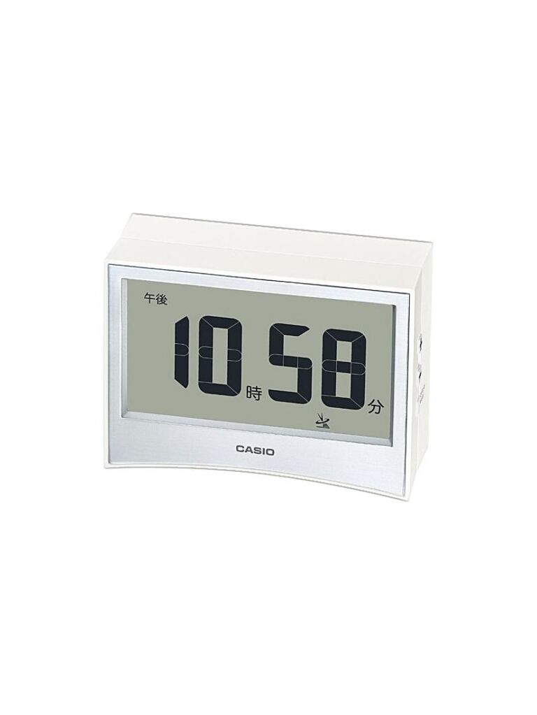 商品説明★ 表側の全面がデジタル液晶となった見やすい置時計です。★ 時刻表示と温度/湿度表示、タイマー表示がボタンひとつで切替可能です。スペック* ケースサイズ(縦×横×厚さ): 71 × 96 × 36 mm* 質量: 145 g* ケース材質: 樹脂* 時刻修正: 電波時計 日本全国対応* 使用電池: マンガン乾電池単4形×2* 電池寿命: 約1年* センサー機能: 湿度計測機能(計測範囲=10〜90%、計測精度=±10%(5〜40℃、10〜90%))、温度計測機能(計測範囲: 0〜40℃、計測精度: ±2℃(0〜40℃))* 時計機能…・タイマー: タイマー1本(最大セット時間: 59分59秒、セット単位: 1秒、計測単位: 1秒、報知時間: 約10秒)・アラーム: 電子音アラーム(5段階で変化)・スヌーズ機能: 止めても止めてもまた鳴るスヌーズ機能(約5分おきに最大7回繰り返す)・ライト: LEDライト(残照機能付き)・カレンダー: フルオートカレンダー・電波受信インジケーター: 電波受信インジケーター(電波受信状態をレベル表示)、電波受信マーク表示(電波受信状況をマーク点灯でお知らせ)・電波受信OFF機能・精度: 電波受信が行われない場合は、通常のクオーツ精度(平均月差±30秒)で動作します。・12/24時間制表示切替・電波受信機能: 自動受信/手動受信、自動選局機能付き(受信電波=長波標準電波JJY、周波数=40kHz/60kHz)※この製品は日本電波仕様です。海外でご使用の際は、電波受信機能をOFFにしてお使い下さい。カシオ 電波置き時計 DQD-S01Jシリーズ カラーラインナップブラックホワイト