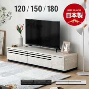 モノトーンのシンプルなデザインに質感で個性を加えたテレビボードです。ウェーブデザインの引出しは光沢塗装で仕上げられています。シルバーやブラックのテレビやAV機器の質感と相性が良く、まとまりのある印象になります。ガラス扉のため閉めた状態でリモコン操作が可能。上部と背面に配線コード用の穴が設けられています。