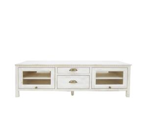 シンプルで機能的なスカンジナビアンスタイルのテレビボード。節ありのオーク材を使用し、天然木ならではの温もりと豊かな表情を感じていただけます。ガラス扉の背面は背板がないため、配線がしやすくなっています。棚板は可動式で、3段階の高さ調整が可能。天板には配線用の切り欠きを設けています。