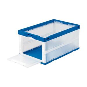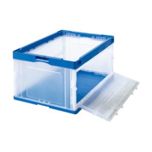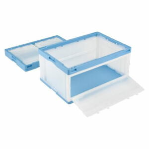 TANOSEE 折りたたみコンテナ フタなし 短辺扉付 75L ダークブルー 透明 1セット(10台) 折りたたみ コンテナ 収納 容器 オリコン