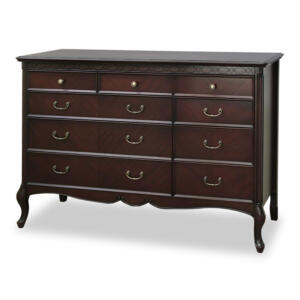 商 品 詳 細商品説明日本の老舗メーカーの伝統的なヨーロピアン家具 フルールシリーズ ブラウンはお部屋に馴染む高級感のある正統派スタイルです シックで上品なブラウン塗装はフレンチクラシックでお部屋にも合わせやすく飽きがこないカラー 重厚でしっかりとした作りは末永くご愛用頂けるお品です こちらは天板と前板に美しい模様張りを施した9引き出しのワイドチェスト 猫脚や曲線が優しい雰囲気を演出してくれます リビングで上部にランプや置物など飾っても素敵です シリーズで揃えて頂くのもおすすめです材質主材 マホガニー・MDF色深みのあるブラウン (ウレタン塗装)サイズ横120×奥行45×高さ85cm 本体重量57.2kg原産国インドネシア注意事項※彫刻部分は職人による手作業になりますので左右対称のデザインでも形状や掘りなど多少異なります ※多少のがたつきは市販のフェルトを貼って高さの調節をおねがいします ※多少の小傷、擦れ、色ムラなどご了承ください配送方法※アートセッティングデリバリーで送料無料にてお届けします 開封、組立設置、梱包材の処理をいたしますので、設置場所をお申し付けください ※北海道、沖縄、離島は別途送料の差額をお見積りさせて頂きます ご検品後に出荷させて頂く為、お届けまでに通常より日数がかかります ご理解の程お願い致します在庫状況メーカー在庫品となります 欠品の場合は次回再入荷の時期をご案内いたします お急ぎのお客様は事前に在庫確認をお願いします