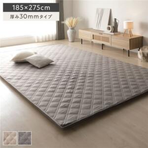 ■サイズ・色違い・関連商品関連商品の検索結果一覧はこちら■商品内容※こちらは『極厚ラグ単品』の商品ページになります。背クッションは付属しませんので、ご注意ください。2types & 2colors Thick rugs・極厚&25D高反発ウレタンでもっちりあたたか やわらかな踏み心地の高反発ウレタンを使用。 底付き感を感じにくい、マットレスのようなラグです。・厚さは好みで選べる2タイプ どちらもふっくら座り心地が良い快適なウレタン入り。 厚みは使い方に合わせて2タイプご用意。・洗濯可能なカバーリング仕様 裏面に特殊加工が施されており、簡単付け替え&ピタッと装着可能。 日々のお手入れ負担軽減に。・専用の背クッションのオプションもご用意 U字セット・I字セットの2タイプをご用意。 ラグとセットで使えばフロアソファに。■25D高反発ウレタンでもっちりあたたかじんわりやわらかな踏み心地の高反発ウレタンを使用。底付き感を感じにくい、マットレスのようなラグです。■防音対策・床冷え軽減にもお子様のいるご家庭や、生活音が気になるマンション住まいの方、寒い季節の床冷えが気になる方にもおすすめです。■好みで選べる2つの厚みどちらもふっくら座り心地が良い快適なウレタン入り。厚みは使い方に合わせて2タイプご用意しました。・厚み30mmタイプ 底付き感を軽減させ、こたつやローテーブルがぐらつきづらい厚みに調整しました。・厚み50mmタイプ 衝撃をやわらげる たっぷりの厚みで、階下への防音対策にもおすすめです。■カバーはかぶせるだけなのに、圧倒的密着度!・密着の秘密は「特殊加工の生地」・裏返しても落ちない密着度 特殊生地を接地面に使用し、吸いつくような密着感で圧倒的なズレにくさを実現。 置くだけで全面が密着するため、裏返してもズレることもありません。・ヨレやズレによるイライラを解消 ピタっとくっつくからヨレやズレの心配なし■ラグカバーは外して洗濯OKアンダーラグ上のラグカバーは、食べこぼし、飲みこぼしをしても洗濯機で丸洗いできるため、清潔さをキープできます。・上のラグだけ外して洗濯機にポン!・ラグの裏面にはすべり止め加工付き すべり止め加工付きで床との密着も心配なし。・毛足がないのでお手入れしやすい ゴミが挟まりにくくお手入れしやすい生地。■専用の背クッションでフロアソファにもオプションで購入可能な背クッションでソファにもなります。U字セット・I字セットの2タイプをご用意。U字セット:背クッション 3個I字セット:背クッション 2個・しっかり支える背もたれ 寄りかかっても後ろに倒れることなくしっかり身体を支えます。・ラグカバーと同じ簡単取り付け仕様 背クッションはラグカバーと同じ仕様で置くだけの簡単取り付け。■背クッションは好きな場所に取り付け可能背クッションはファスナー仕様ではないため、いつでも自由に好きな場所へ取り付けできます。■アンダーラグ部分は三つ折りできてコンパクトラグカバーを取り外せば、本体のアンダーラグは折りたたんでコンパクトに収納が可能です。幅95×奥行64×高さ10cm■オールシーズン快適なサラッとした素材毛足がなくサラッとした生地を使用しているため、年中快適にお過ごし頂けます。■Color variationベージュグレー■Attention・ラグカバーをつけるアンダーラグの上面は、特殊加工の生地となっています。 加工上、アンダーラグによって色差が出ることがありますが、ご使用上問題ございませんので、あらかじめご了承ください。・生産の工程上サイズにばらつきがございます。 背クッションはお好きな位置に取り付け可能なため、レイアウトに合わせて寸法をご確認ください。■商品スペック■サイズ(約)・アンダーラグ 185×185cm(厚さ30mm) 185×185cm(厚さ50mm) 185×240cm(厚さ30mm) 185×240cm(厚さ50mm) 185×275cm(厚さ30mm) 185×275cm(厚さ50mm)・背クッション U字タイプ(3個):コーナー用(共通) 70×70×30cm、中央 90.5×23×30cm I字タイプ(2個):90.5×23×30cm(共通)■素材・アンダーラグ 表面:ポリエステル100% 中材:ウレタンフォーム 裏面:ポリエステル100%(すべり止め加工)・ラグカバー 表面・中材裏面:ポリエステル100%・背クッション 側生地:ポリエステル100% 中材:ウレタンフォーム■カラー ベージュ、グレー■備考 ラグカバー:洗濯機OK■生産国 中国■梱包サイズ・重量(約)・アンダーラグ 185×185cm(厚さ30mm):55×32×50・6.4kg 185×185cm(厚さ50mm):59×36×50・8kg 185×240cm(厚さ30mm):57×32×62・8.1kg 185×240cm(厚さ50mm):61×36×62・10.2kg 185×275cm(厚さ30mm):58×32×70・9.1kg 185×275cm(厚さ50mm):63×36×70・11.4kg・背クッション U字タイプ(3個):94×94×30・7.3kg I字タイプ(2個):92×37×30・3.6kg■商品に関するご注意※こちらは『極厚ラグ単品』の商品ページになります。背クッションは付属しませんので、ご注意ください。・生産の工程上サイズにばらつきがございます。 背クッションはお好きな位置に取り付け可能なため、レイアウトに合わせて寸法をご確認ください。・ラグカバーを洗濯の際には、洗濯表示にした