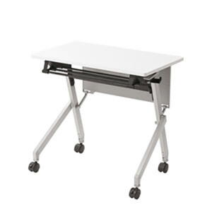 LOOKIT 会議用テーブル 幕板なし 幅700×奥行500mm 平行スタッキング ソフトエッジ巻き ワークデスク フォールディングテーブル 木目 ホワイト脚×ホワイト天板 HST-7050