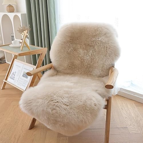 ムートンラグ 天然 羊毛100% オーストラリア産 高級毛皮 ラグ ふわふわ暖かい カーペット ソファーマットにも最適 家居装飾やキャンプにもぴったり (1.5匹【65×150cm】, リネン色)