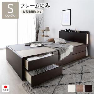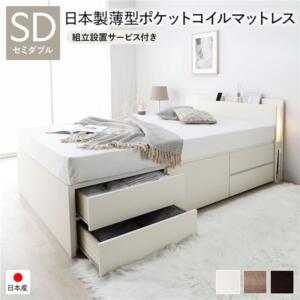 商品によっては北海道・沖縄・離島へ配送不可や、別途配送料が発生します。※商品説明文の「配送欄」をご確認くださいませ。タイミングによっては在庫切れの場合があります。■サイズ・色違い・関連商品関連商品の検索結果一覧はこちら■商品内容本商品は「組立設置サービス利用しない」お客様組立の配送でございます。ヘッドレスチェストベッドデザイン:レイアウト自由なヘッドレスベッド収納:長尺物も入るBOX収納構造品質:安心の日本製で使いやすく丈夫■すっきりデザインヘッドレスだから見た目はすっきり、置く方向を選ばないからレイアウトが自由に。・自由にレイアウトが可能・お部屋が広くなるヘッドレス■大容量のBOX収納構造・思い通りに仕分けられる5杯の引き出し収納 浅型4杯、深型1杯の計5杯の引き出しで、普段使うものから かさばるものまできちんと仕分けて、すっきり収納できます。・長物も収納可能 引き出しの反対側には長物・大物が収納可能。 季節ものや引き出しに入りきらないものまで、 たっぷり収納できます。 引き出し収納部はお部屋のレイアウトに合わせて左右どちらでも使えます。 ※引き出し収納部とサイドフレームを付け替える必要があります。・これだけの荷物をすっきり収納 ベッド床一面が収納スペースになるから、 小物から長物まで、たっぷり収納。 ※写真はセミシングルサイズ一台分になります。・BOX構造とは 引き出し部の上下左右が囲われた箱のような構造なので、 丈夫でホコリの侵入を防ぎます。・画期的な収納構造 一般的なベッドは荷重を支えるサイドフレームが必要ですが、 BOX構造は不要、その部分を収納スペースとして有効活用できます。・丈夫でホコリが入りにくい BOX構造は、板に囲われた箱のような構造なので、丈夫でホコリが入りにくい。■ながく使える日本製品質 -引出しはスライドレールを採用。たくさん収納しても開閉スムーズ。 -長物収納部分の床板は取っ手付き。大きな床板も楽々開けられます。 -ぶつかりやすいフットボードの角を丸くし、安全で美しい仕上がり。 -長物収納部は底板付き。荷物で床を傷つける心配がありません。・職人と機械がつくりあげる「日本品質」 創業50年、関東の老舗国産家具メーカー。創業以来、収納家具の生産技術を 徹底的に磨き続け完成させたのが職人と機械を組み合わせた 半自動一貫生産ライン。そこで作られる日本の住環境に寄り添うベッドは 設計・製造・組立の細部まで妥協せず、丁寧に作り上げた「日本品質」 ぜひ、その使いやすさをご実感ください。・低ホルムアルデヒドF☆☆☆☆ ホルムアルデヒドはシックハウス症候群になる原因の一つで家具や 芯材や塗装にも含まれています。ご家族皆様が安心して ご利用いただけるよう本商品は低ホルムアルデヒド材F☆☆☆☆を 使用しております。・ぴったり並べて使える 2台並べても隙間ができないので、1台の大きなベッドとしてご利用も。 耐荷重180kgの頑丈設計■セットマットレスもご用意・日本製薄型ポケットコイルマットレス 両面仕様/厚さ12cm 袋に包まれたコイルが独立して沈み込むため、 身体のラインに沿い自然な寝姿勢を保つ体圧分散構造。 波動が伝わりにくく二人でのご使用にもおススメです。 マット内部の蒸れを防ぐ通気孔付き・3ゾーンポケットコイルマットレス 片面仕様/厚さ12cm 荷重のかかりやすい中央部分のコイルを太くし、腰回りの負担を軽減した3ゾーン構造。 過度な沈み込みを抑えたい方におすすめです。 柔らかい肌触りのニット生地■カラー ナチュラル/ダークブラウン/アイボリー/シャビーオーク■さらにコンパクトなショート丈も選べる女性の一人暮らしや子ども部屋に最適■商品スペック■ベッドフレーム本体【サイズ】ショート丈セミシングル:(約)幅83×長さ185×高さ41cmショート丈シングル :(約)幅98×長さ185×高さ41cm通常丈セミシングル :(約)幅83×長さ200×高さ41cm通常丈シングル :(約)幅98×長さ200×高さ41cm通常丈セミダブル :(約)幅120×長さ200×高さ41cm通常丈ダブル :(約)幅140×長さ200×高さ41cm床面までの高さ:(約)41cm【収納部有効内寸】・ショート丈 引き出し収納 深型引き出し:(約)幅52×奥行38.5×深さ27cm 浅型引き出し:(約)幅52×奥行38.5×深さ12cm 長物収納 セミシングル:(約)幅29×奥行178×深さ34cm シングル :(約)幅44×奥行178×深さ34cm・通常丈 引き出し収納 深型引き出し:(約)幅57×奥行38.5×深さ27cm 浅型引き出し:(約)幅57×奥行38.5×深さ12cm 長物収納 セミシングル:(約)幅29×奥行193×深さ34cm シングル :(約)幅44×奥行193×深さ34cm セミダブル :(約)幅66×奥行193×深さ34cm ダブル :(約)幅86×奥行193×深さ34cm【材質】 プリント紙化粧繊維板、引き出し:桐集成材【生産国】 日本【梱包サイズ】個口数:5ショート丈セミシングル:(約)182×44×56cm・35×90×10cm 88×5×43cm・88×5×43cm・35×2×90cmショート丈シングル :(約)182×44×56cm・50×90×10cm 100×5×43cm・100×5×43cm・50×2×90cm通常丈セミシングル :(約)196×44×56cm・35×98×10cm 88×5×43cm・88×5×43cm・35×2×100cm通常