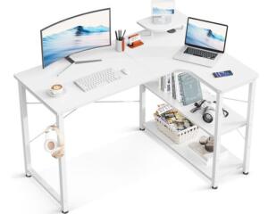 ODK パソコンデスク L字 ゲーミングデスク 幅110 L字デスク pcデスク desk 机 ラック付き 収納 オフィスデスク 在宅勤務 組立簡単 書斎 ホワイト 左棚