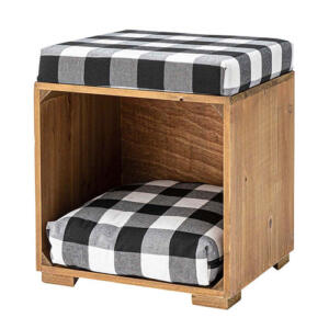 ペットが入れるボックス型のスツール取り外しが可能なクッションが付いたペットスツール●商品サイズ:W34×D29.5×H39cm ●材質天然木(杉) 積層合板 水性ラッカー塗装 ポリエステル コットン ●完成品 ●静的耐荷重80kg