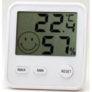 おうちルームデジタル温湿度計 ホワイトフェイスアイコンでお部屋の快適と不快をお知らせします。○卓上・壁掛け(背面マグネット付)兼用○温度・湿度計○フェイスアイコン(快適・不快)メーカー型 : TD-8411 内容物 : 本体(約85×90×20mm)×1 材質 : ABS 原産国 : 中国製 電源 : 単4×1(付) 箱サイズ : 約148×120×25mm(入) 箱入重量 : 約100g