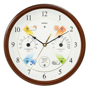 お店TOP>家電>測定器>温度計・湿度計>温度計>エンペックス スーパーEX 晴天望機 1台4役 EX-5473 (1台)【エンペックス スーパーEX 晴天望機 1台4役 EX-5473の商品詳細】●照る日、曇る日、生活リズムを刻みます●晴天望機・1台4役●音の静かななめらか秒針●ウレタン仕上天然木枠●天気予測●温度計●湿度計●時計【規格概要】本体サイズ:直径約270*54mm箱寸法:約275*275*60mm質量(箱含む):約950g(ギフトボックス)外枠材質:天然木電源:単3乾電池4個製造:日本製【ブランド】EMPEX(エンペックス)【発売元、製造元、輸入元又は販売元】エンペックス気象計リニューアルに伴い、パッケージ・内容等予告なく変更する場合がございます。予めご了承ください。エンペックス気象計141-0031 東京都品川区西五反田7-22-17 TOCビル03-3494-4010広告文責:楽天グループ株式会社電話:050-5577-5043[健康家電 美容家電/ブランド:EMPEX(エンペックス)/]