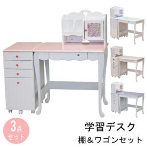 【楽天スーパーSALE期間中全品ポイント10倍】学習机 勉強机 シンプル 女の子 おしゃれ 白 学習 勉強 机 収納 棚 引き出し 本棚 書棚 ワゴン キャスター 保育園 幼稚園 小学生 子供 キッズ 新入学 入学祝 卒園 プレゼント 孫 子供部屋 新生活