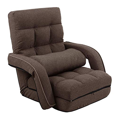 KYODA 座椅子 ひじ掛け付き クッション付き リクライニング 14段階調節 3way ハイバック ふあふあ 脚置き フロアチェア 折りたたみ可能 幅約50cm ブラウン 08A